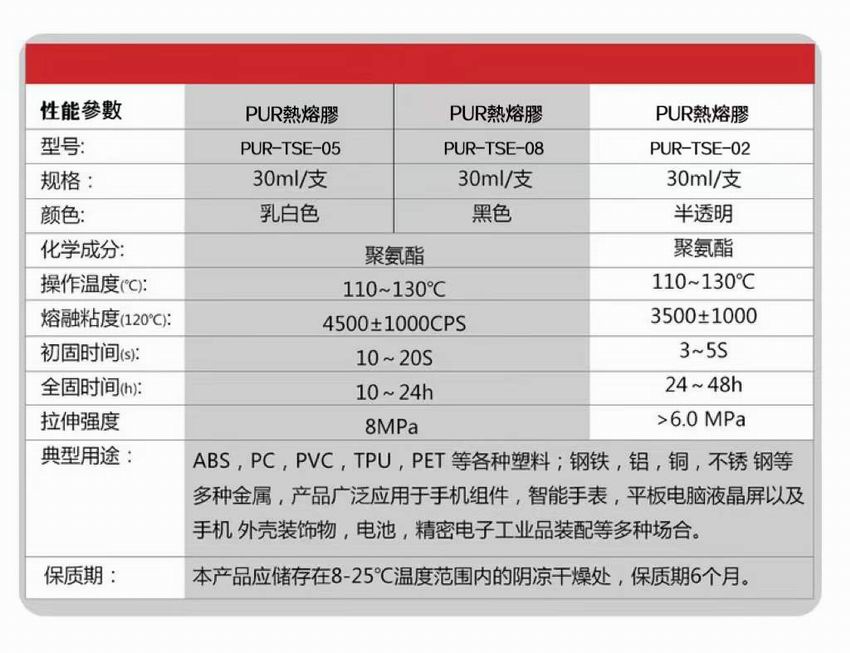 昶田PUR熱熔膠是一款單組份濕氣固化型熱熔結構膠,不含有任何溶劑和揮發物,定位時間短,固化後膠體強韌耐高低溫性能優異。適用於大多數材料粘接,塑料,金屬,玻璃及復合材料,具有良好的貼合,密封,粘接,粘接膠線可小至1mm。