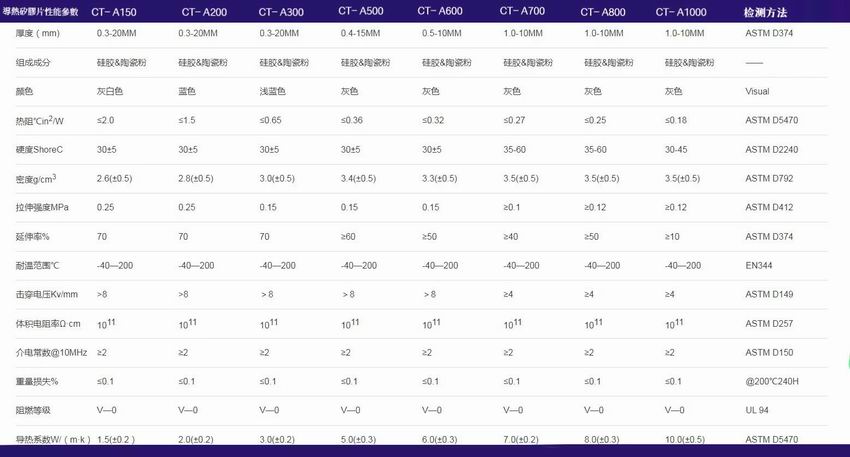 導熱系數:1W/MK~11W/MK,厚度:0.3MM~15MM。